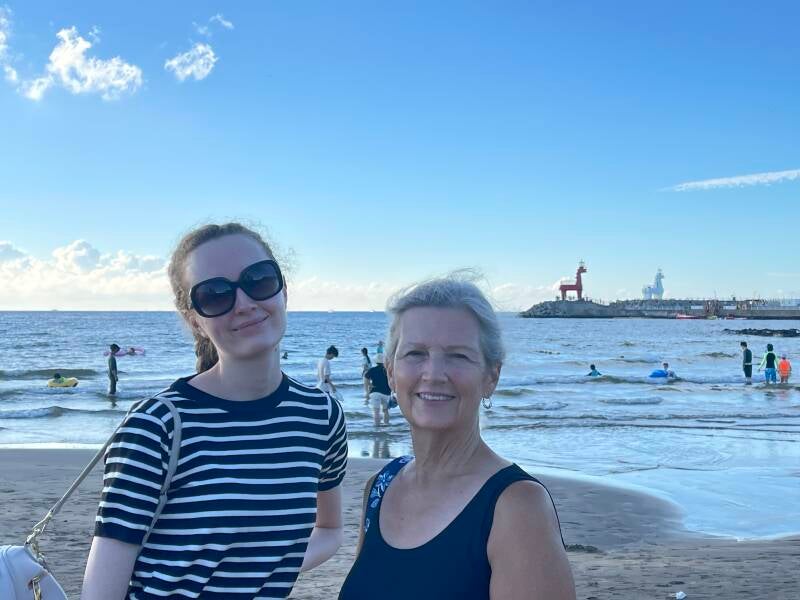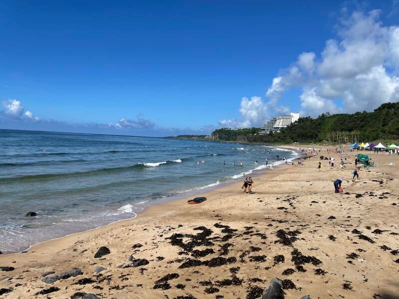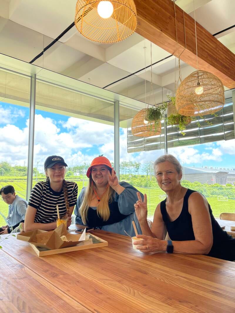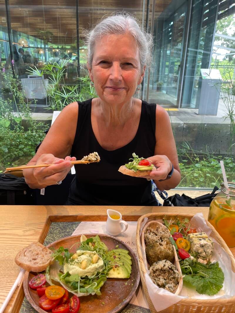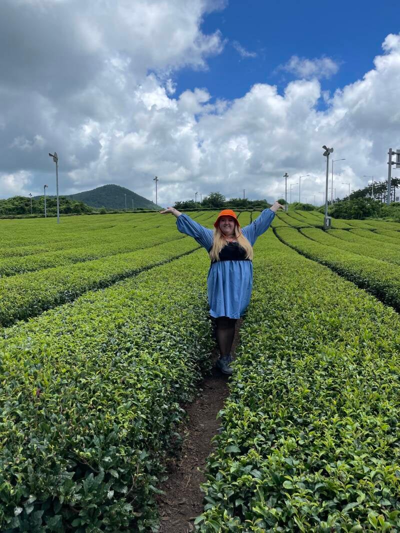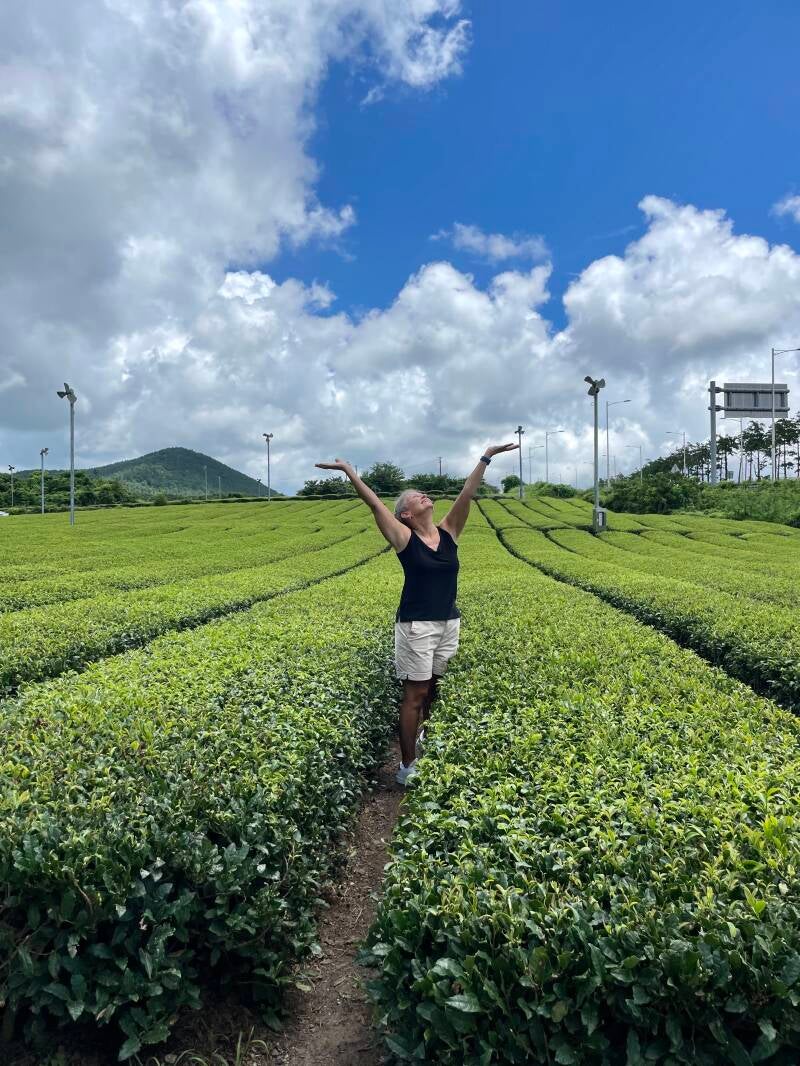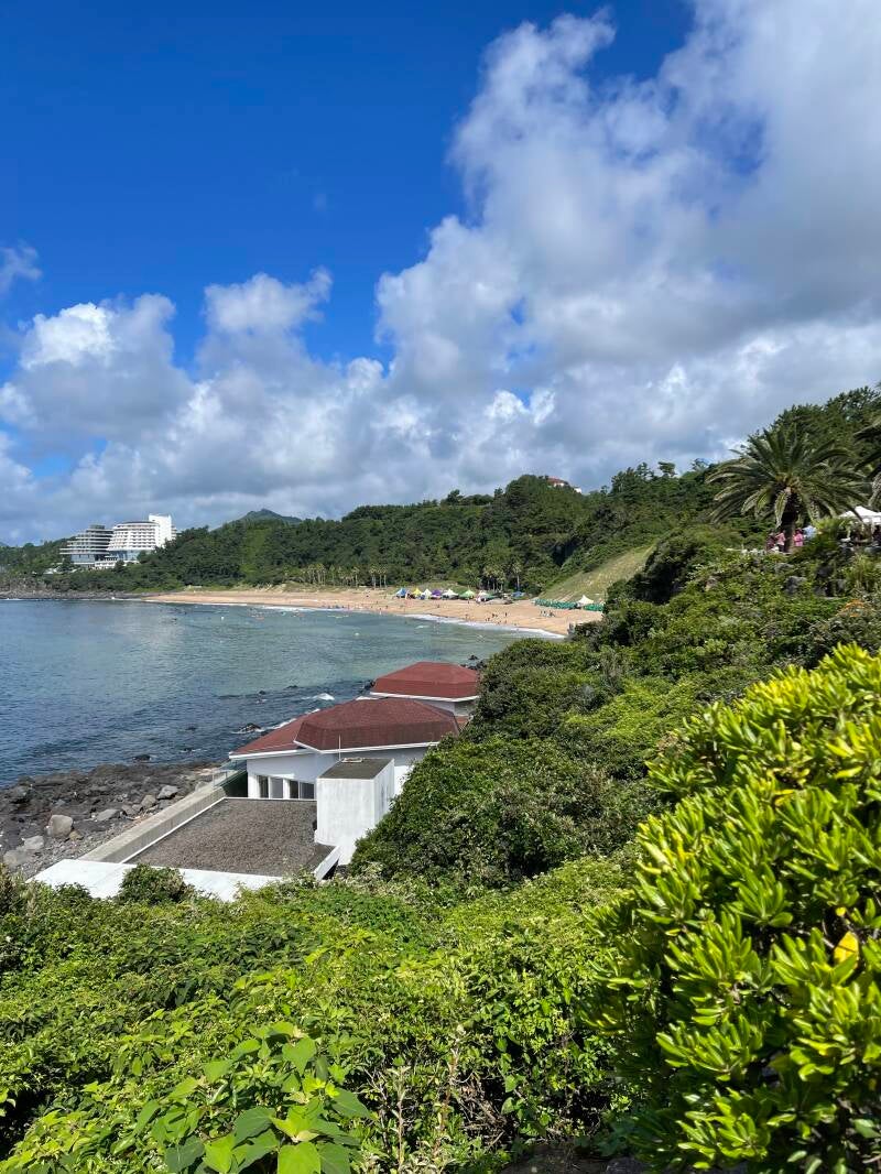 Before leaving Seogwipo, we finally found a path from the cliffs to the beach. The entire island is volcanic rock, and the path down was steep. After Caroline took a quick dip, we packed up and left for Jeju City. Our first stop was Innisfree Jeju House to sample skin care products, see the beautiful green tea fields, and eat in a cafe. We purchased hand lotion and a variety of green tea to take home.