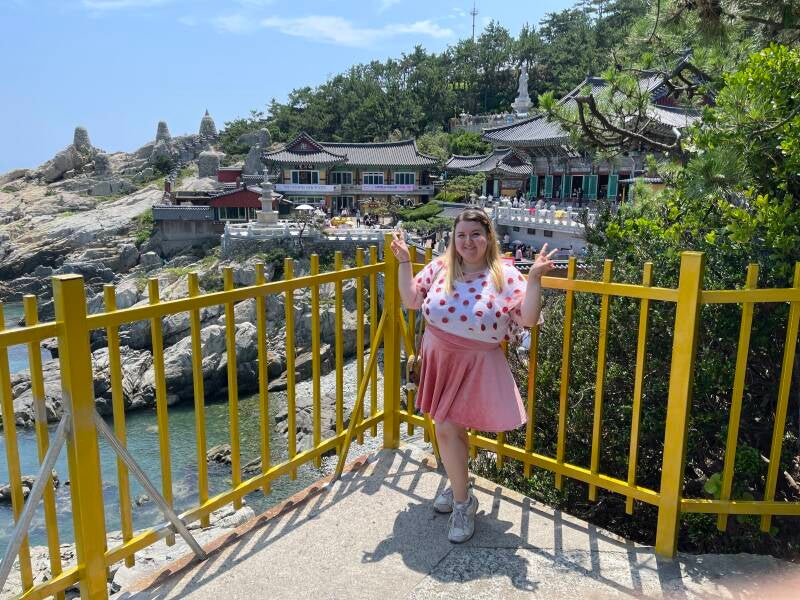 This morning we left Haeundae Beach for the Haedong Yonggungsa Temple (해동 용궁사). It is the only temple along the beautiful shore, since most Korean temples are located in the mountains. This temple is one of the three sacred places related to the Goddess of Buddha of South Korea. Its motto is ‘at least one of your wishes will be answered here through sincere prayers’. We lit candles to have wishes fulfilled as well as tossing coins in the Lucky Coin Devination.