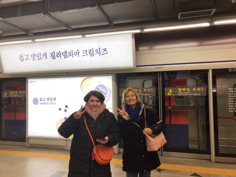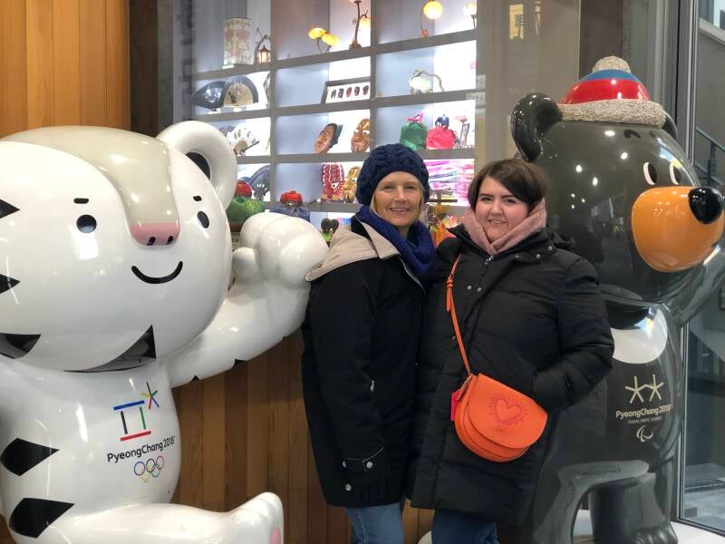 We found the Olympic mascots, Soohorang the tiger and Bandabi the bear! Soohorang was chosen for the Winter Olympics and Bandabi was selected for the Paralympics. They were so cute we had to pose with them!