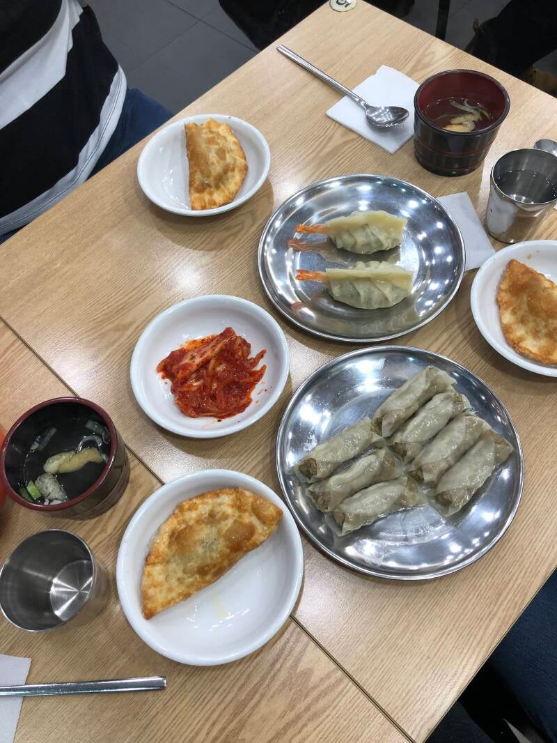 We had dinner back near our hotel, which was delicious, like all the food we've tried. Maybe we just love food! (We do, but especially the food on this trip.) We had dumplings and kimchi (a staple at every meal) and worked on our chopsticks skills.