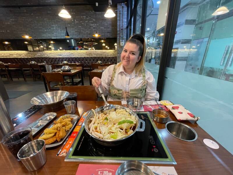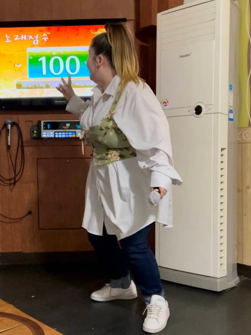 We took the bus to Chungju for dinner, shopping, and noraebang. In Korean the word 노래 (norae) stands for “song” and the word 방 (bang) means “room.” So the Korean word for karaoke literally means “a song room.” And sing, we did! Caroline is amazing and sings beautifully in both English and Korean. On the other hand, I can't sing well, but I can sing loudly!