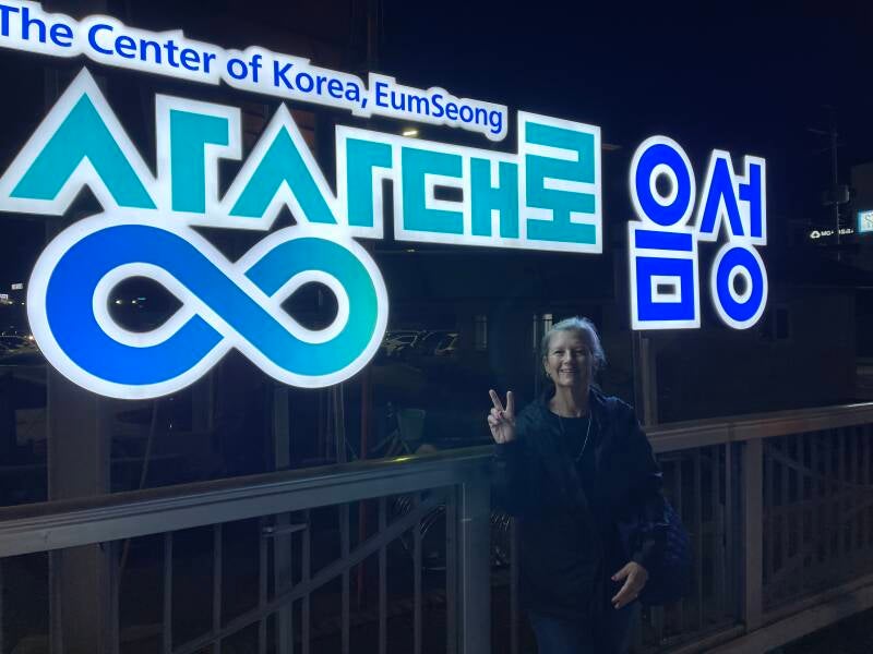 These are the Eumseong mascots, Pumba and Kwari. Every year, Eumseong holds a Pumba Festival. "Pumba" doesn't really have a meaning, but Caroline's students told her the closest translation is 'beggar.' When Korea was impoverished, street singers would beg for food, money, etc. all while keeping a steady rhythm, chanting: "Pumba." This festival honors that part of Eumseong's history. Later, Pumba and Kwari, two street-singing children, became the mascots of this festival, and of Eumseong itself.