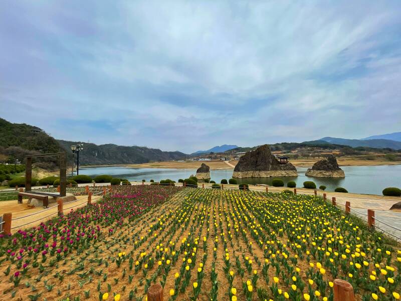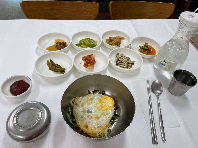 Since I didn't choose to ride the monorail, carts, or zip line at the Skywalk, I had time to visit another beloved and well-photographed site, the Dodamsambong Peaks. I spent the afternoon there relaxing and taking photos. While sitting alone, a young man who spoke some English came over, asked me where I was from, and told me this was one of the most beautiful places in Korea. I have to agree. Before leaving I had a late lunch of wild vegetable bibimbap. No, I never tire of it!