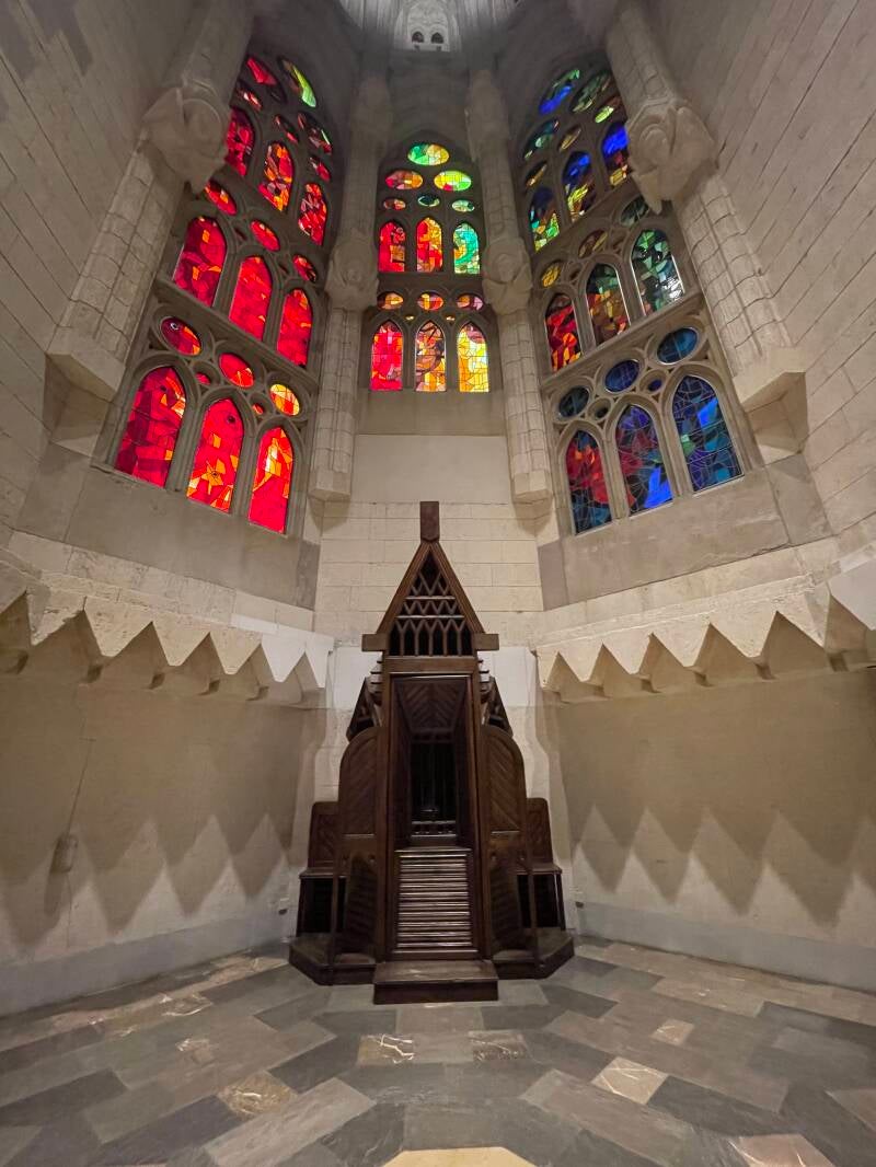 Begun in 1883 and built solely from donations, work continues today on the Basilica of La Sagrada Familia. All the other basilicas we visited were centuries old, and had detailed statues and imagery from the Bible inside the buildings. However, all of this was on the outside at the in-progress Sagrada Familia because it was designed to allow people to partake of the Bible every time they pass the exterior of the building. We entered through the Nativity facade, where the sculptures and stone details depict the whole story of the coming of Jesus, with the final scene of Joseph leaning protectively over the Virgin Mary and the baby Jesus. Inside, the sky-high columns and archways resemble a forest. I feel like we’ve spent so much of this trip looking up! Light enters the basilica through the stained glass windows (blue and green on the side of the Nativity and orange and red on the side of the Passion), but also through skylights. Inside you get a feeling of awe and peacefulness. Our tickets included an app with an audio tour that took us all through the sanctuary, and we were planning to climb the outer Nativity Tower, but the rain meant it was closed for safety concerns. Next time for sure!