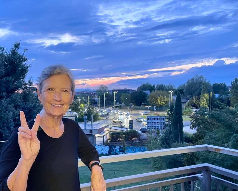 We traveled from Newark through Copenhagen to Florence and arrived at our destination just before dark. Our apartment is located about 15 minutes from city center by tram. It’s a lovely third floor unit with a full kitchen, and front and back balconies. We got a good night’s sleep and this morning, Courtney and I took the tram to city center. We explored the Mercato Centrale (central market), had cappuccino, and ate panini on fresh bread. Then we went to Basilica Santa Maria Novella, which was once a convent and full of frescoes in varying states of restoration, mostly depicting saints.